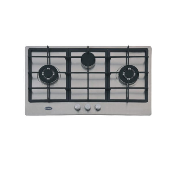 Highlights: Canon CA-933 Premium Series Gas Hob | Best Price in Multan, 2 Big and 1 Medium Sabaf Burners, Cast Iron Grill, 860x500mm, High End Brass Valves